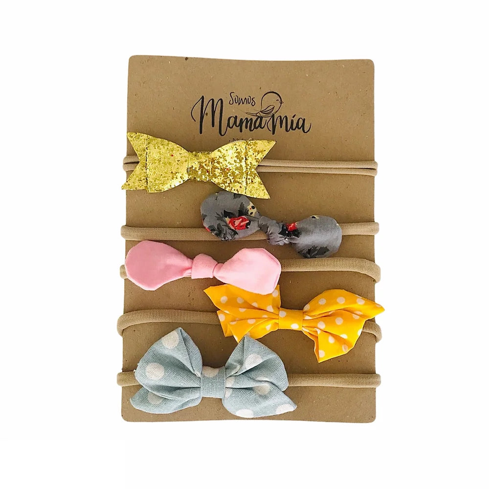 👗 Set de 5 balacas de nylon con variados lazos, ideales para complementar cualquier outfit de tu bebé y mantenerla siempre hermosa desde sus primeros días.