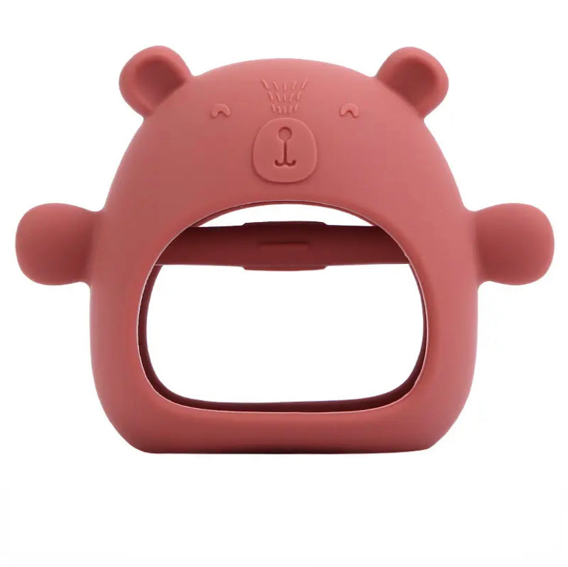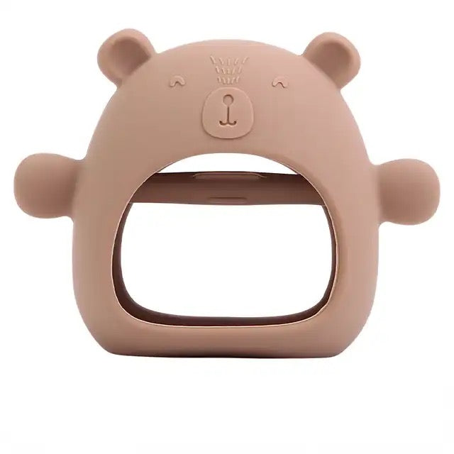 Este mordedor Oso Mano de silicona es la 🌟 solución perfecta para aliviar las molestias de la dentición de tu pequeño. Sus diferentes texturas especializadas masajean suavemente las encías - 💧 alivio inmediato, sin lágrimas.